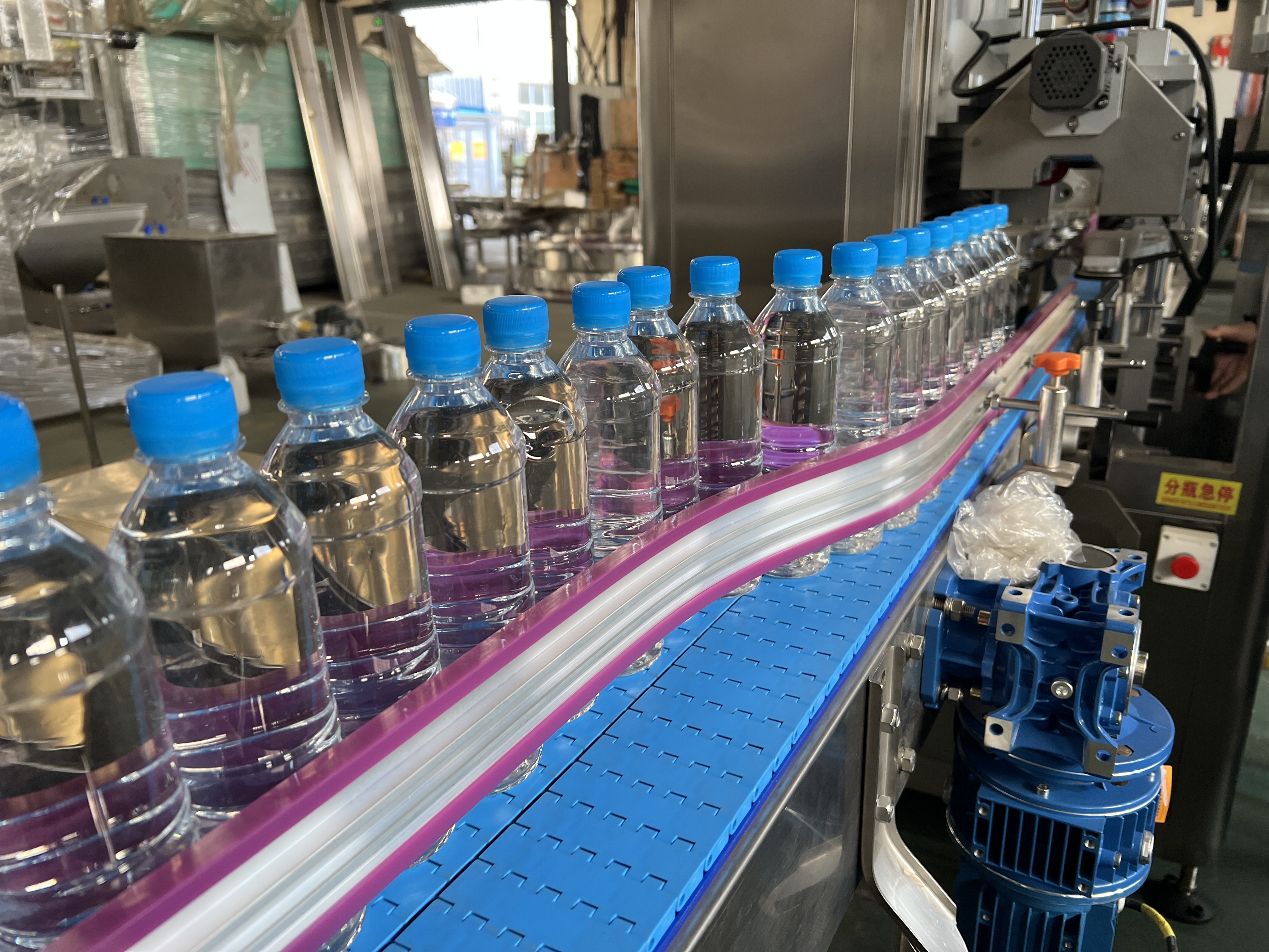 Application: PET bottles of pure drinking water, mineral water, mineral water, mountain spring water and other gas free products production. the line with auto sleeve labeling shrinking machine , automatic group packing machine .